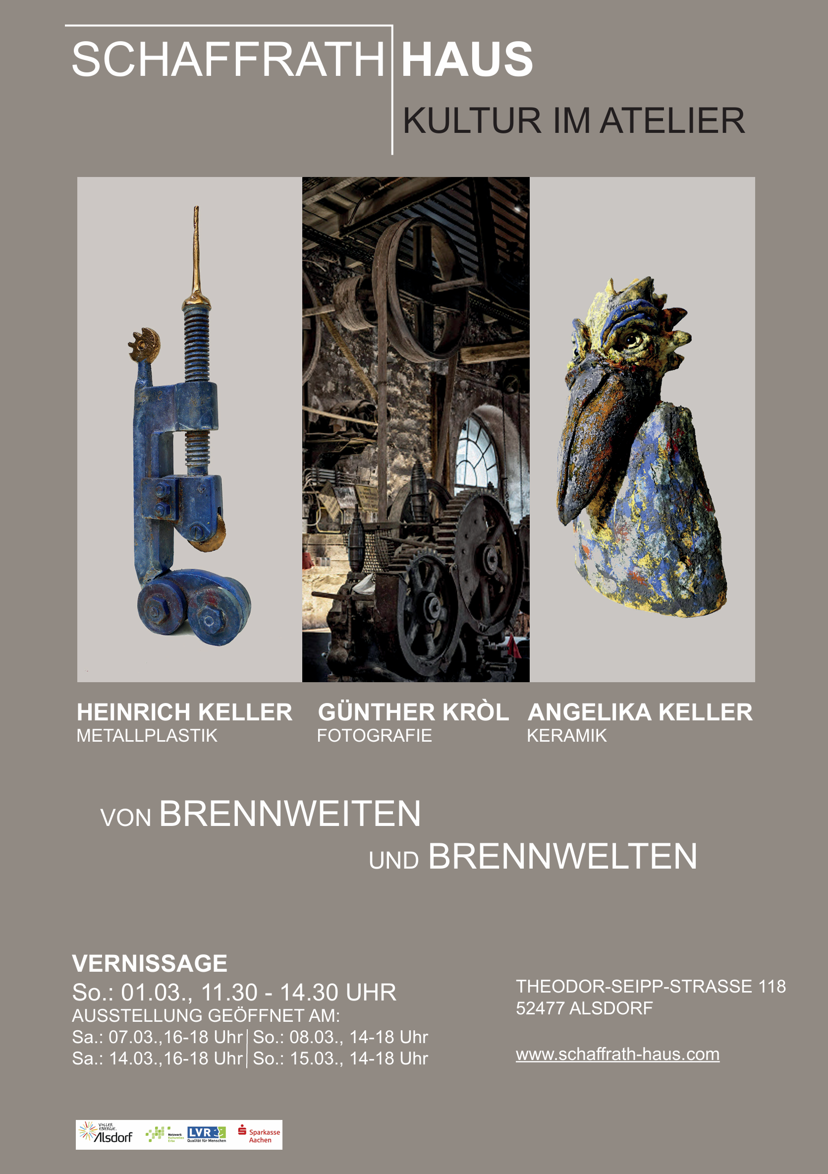 Und – weil die Veranstaltung im Schaffrathhaus stattfindet – wird sie ergänzt durch lecker Häppchen und Kunst: Es sind schon einige Exponate aus der Ausstellung „Von Brennweiten und Brennwelten“ mit Angelika und Heinrich Keller und Günther Król, die am 01.03.2026 eröffnet wird, zu sehen.